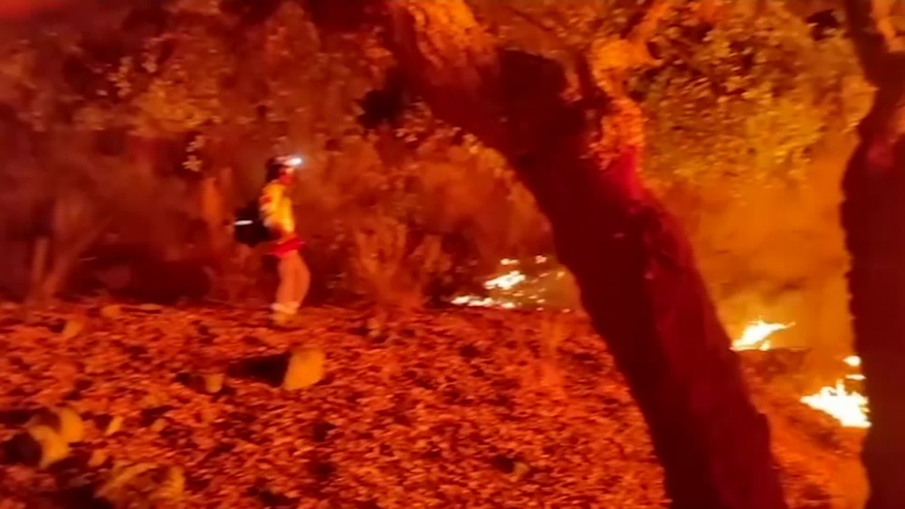 Firefighters across Spain were working to stamp out over 30 fires consuming forests spread across the country into Sunday. Crews in the western Extremadura region were seen using chainsaws and hoes as they battled through the night to stop one blaze from spreading further.