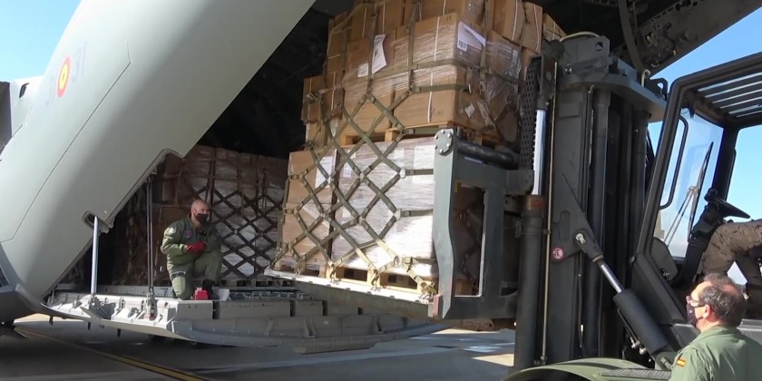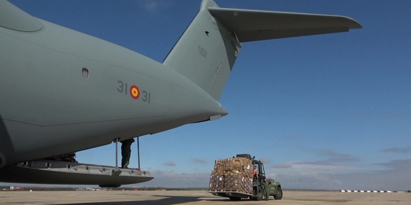 Two Spanish aircraft took off from Torrejon de Ardoz air base outside Madrid on Sunday carrying supplies to Ukraine. The Airbus A400M military aircraft were loaded with personal protection equipment and sanitary supplies which are being sent to Ukraine as it continues to fight a Russian invasion of the country.