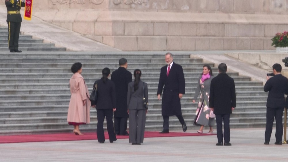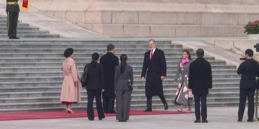 Felipe and his wife Queen Letizia arrived in a limousine to the capital's stately Great Hall of the People where they met Xi, accompanied by Chinese foreign minister Wang Yi and commerce minister Wang Wentao. Xi called Felipe a "good friend of the Chinese people".