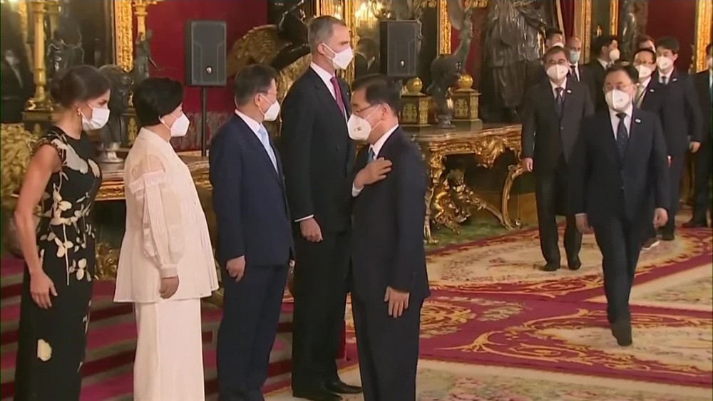 At the dinner King Felipe VI, accompanied by his wife Queen Letizia, spoke of the common ties between the two countries and their mutual respect for the rule of law and the protection of human rights. During his two-day stay, Moon was also due to meet with Spanish Prime Minister Pedro Sánchez and other members of the government, as well as attend a business event in Barcelona on Wednesday evening. Moon's visit to Spain is the first by a South Korean president in 14 years.