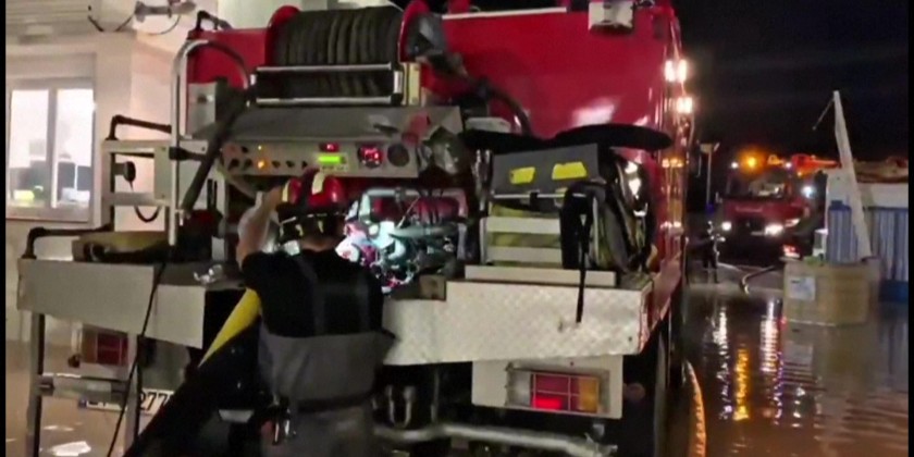 Rescuers from the Spanish Military Emergency Unit are responding to flooding on the Mediterranean holiday island of Ibiza. Torrential rainfall has triggered floods and prompted the closure of beaches and schools.