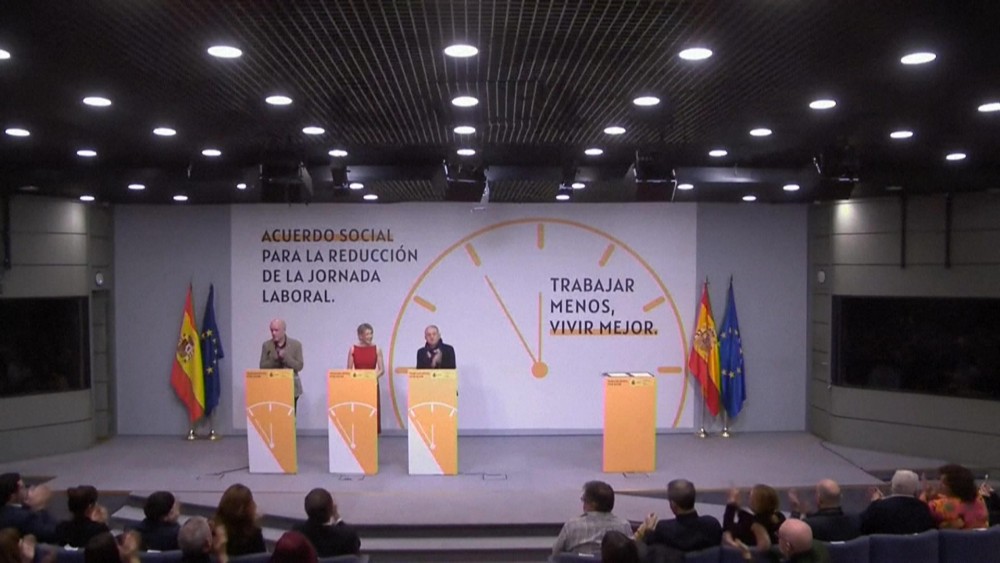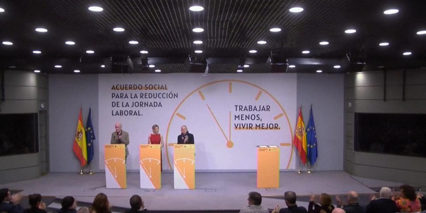 Labour Minister Yolanda Diaz and the leaders of unions UGT and CCOO stressed the "historic" nature of the measure reducing the maximum number of work hours per week to 37.5 from the current 40, with unchanged salaries, before the end of 2025.
