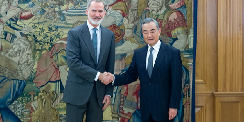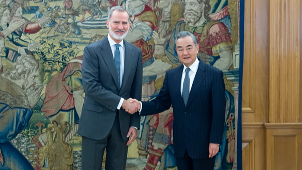 Spain's King Felipe VI welcomed Chinese Foreign Minister Wang Yi at the Zarzuela Palace on Monday.