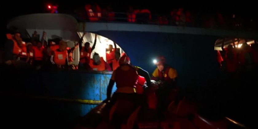 The rescue ship Open Arms Uno remained at sea and is seeking a safe port for the rescued people, including some who need medical attention and many who are suffering dehydration, said Laura Lanuza, an Open Arms spokeswoman. In the largest rescue, the Open Arms picked up 294 people, mostly Egyptians, from an overcrowded barge in waters south of Malta in a nighttime operation that spanned nearly five hours before dawn Sunday. The people rescued said they had been at sea for four days, and many were suffering dehydration. The packed boat had been spotted by volunteer pilots combing the Mediterranean for people in distress. Before that, the Open Arms rescued 59 migrants from Syria, Egypt, Sudan and Eritrea, among them 10 minors, from an oil platform in Tunisian waters, with the aid of oil workers who helped the migrants onto the rescue ship.