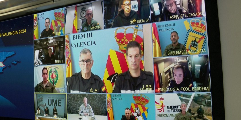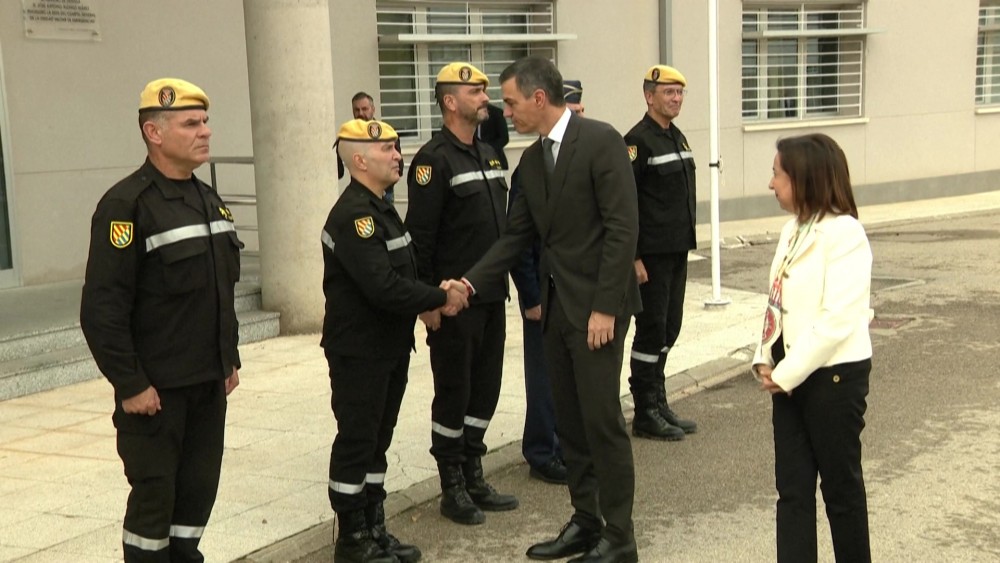Spanish Prime Minister Pedro Sanchez visited the headquarters of the country's military emergency unit, which has been deployed in the Valencia region since the recent flooding began. The floods have caused the deaths of at least 211 people in Spain, with the vast majority in Valencia region.