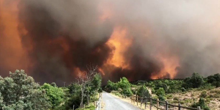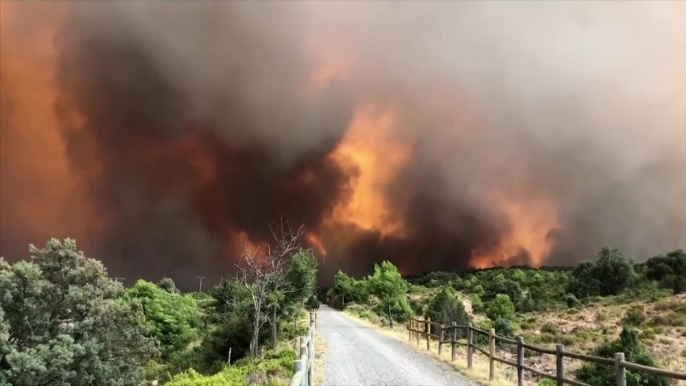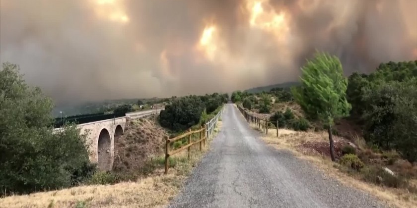 Three passengers suffered serious burns after they tried to pass through an area hit by a fierce wildfire in Spain's Castellon region on Tuesday. The service from Valencia to Miraflores was forced to stop and evacuate the passengers as the train tracks ran close to the towering flames.
