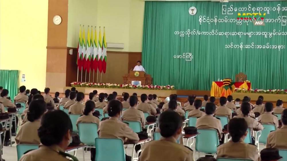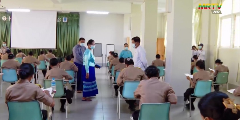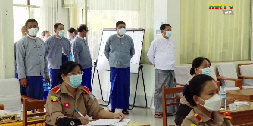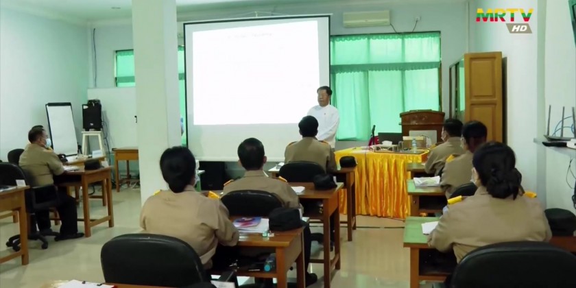 Afterward, the Chairman of Union Civil Service Board inspected the military parade practices of the trainees from the pre-officers basic training and civil service management post-graduate diploma training, subject analysis answering of the trainees of basic clerk training, plantation of vegetables and the class of civil service organizations’ second chief management training course and senior officers management training course followed the meeting with the personnel and giving necessary instructions on training and administrative matters.
