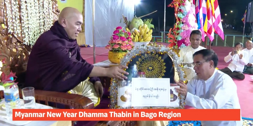 The Bago Region Government recently organized a three-day Myanmar New Year DhammaThabin, drawing participation from various officials, including Bago Region Chief Minister U Myo Swe Win and his wife.
