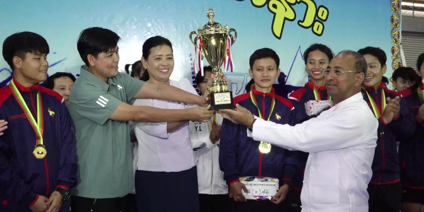 The U-25 men/women futsal tournament final match for the Shan State Chief Minister’s Trophy was held in Taunggyi. In the men final match, the Lashio District Team beat the Tachileik District Team.