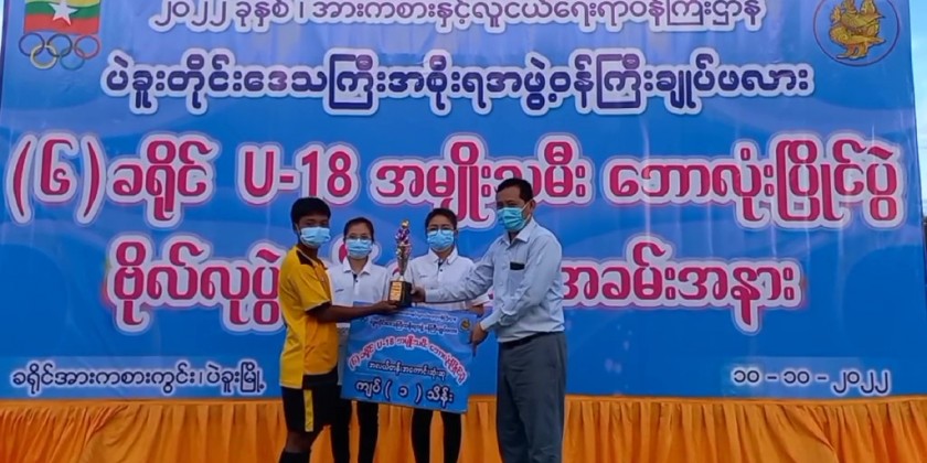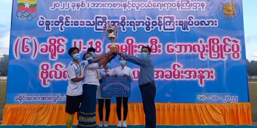 And, the officials presented awards to the best goalkeeper, defensive player, midfield player, striker and the best player of the match. Also, trophy and awards were presented to the Champion, Thayawaddy District team.