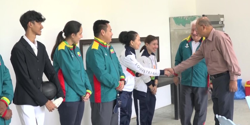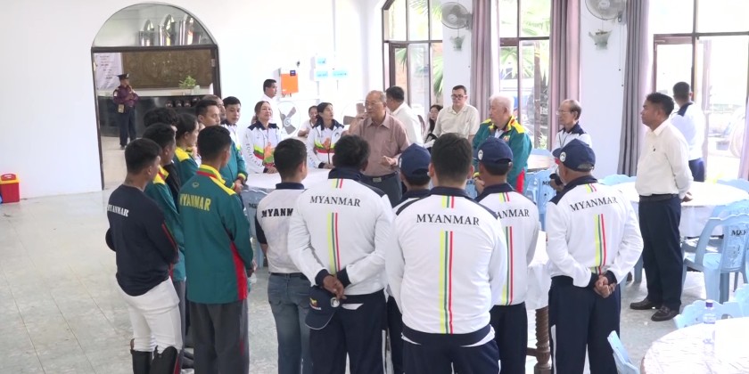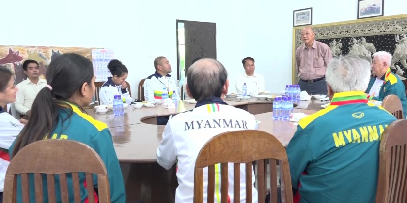 On arrival at the Myanmar Equestrian Federation, officials reported on the preparation and training  of athletes for Equestrian Eventing Triathlon whcih combines Dressage, Show Jumping and Cross Country categories. The Union Minister cordially greeted the athletes and encouraged to gain more wins in the 33rd SEA Games.