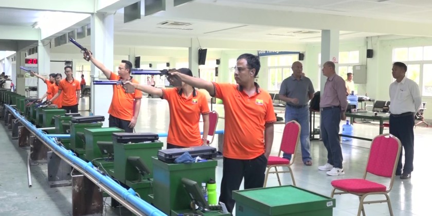 Following this, the Union Minister and party went to Myanmar Shooting Sport Federation in North Dagon Township, and observed the training process of Myanmar selected athletes. He also instructed the atheletes to work harder for gaining sucess.