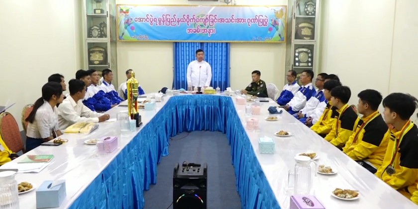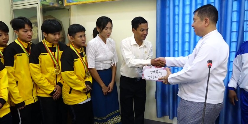 Then, a ceremony to honor the Mon State Sepak Takraw team who won prizes in the 2023 State/Region Sepak Takraw Competition was held at the meeting hall of Yarmanya Sports ground.