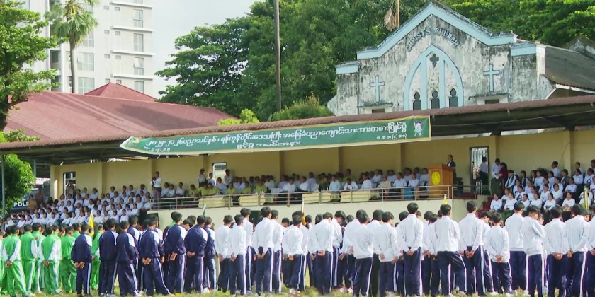 This was followed by recitation of four-point sports oath, and explanation on the sports festival. The ceremony also featured the performance of students from various high schools. In the opening football event, Insein District Team won the match over Thanlyin District team with 1-0.