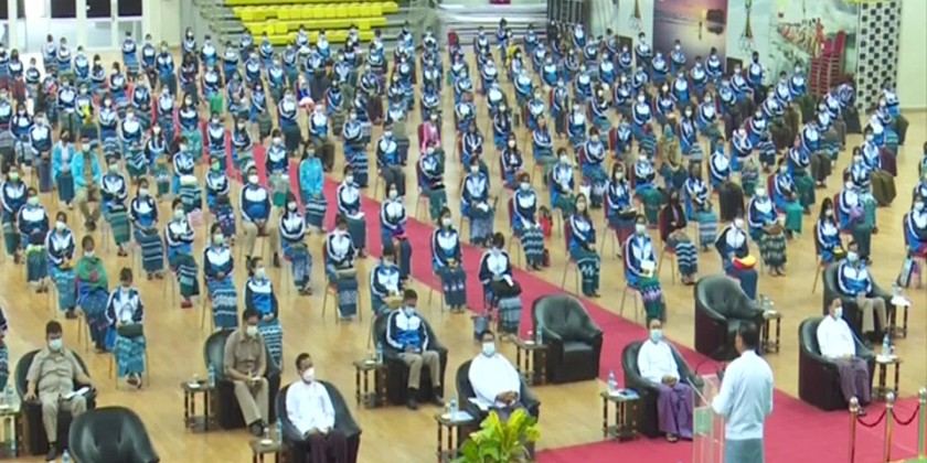 Union Minister for Sports and Youth Affairs U Min Thein Zan met with the Ministry’s officers and staff and gave guidance on Monday at Wunna Theikdi Stadium (B) in Nay Pyi Taw.