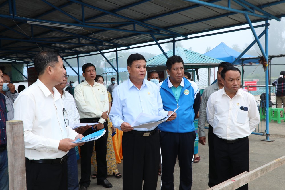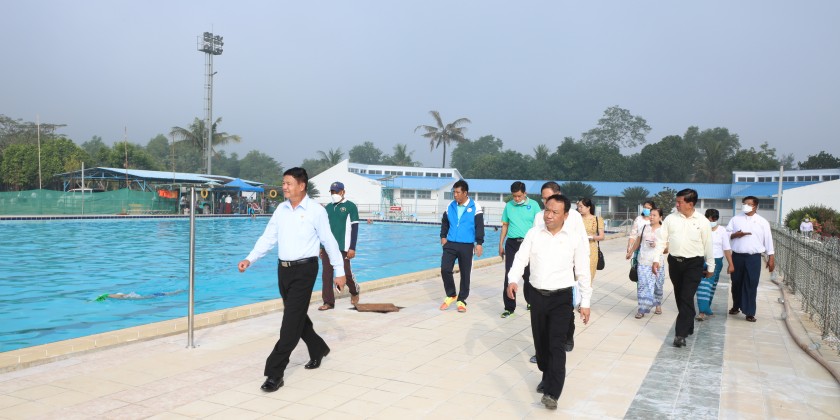 It is 170 x 50 ft wide facility, and the Union Minister instructed for timely completion of the project. He also inspected 150 x 60 wide 2-storey spectator seating which is being constructed by spending over 805 million kyats allotted from the Union budget.