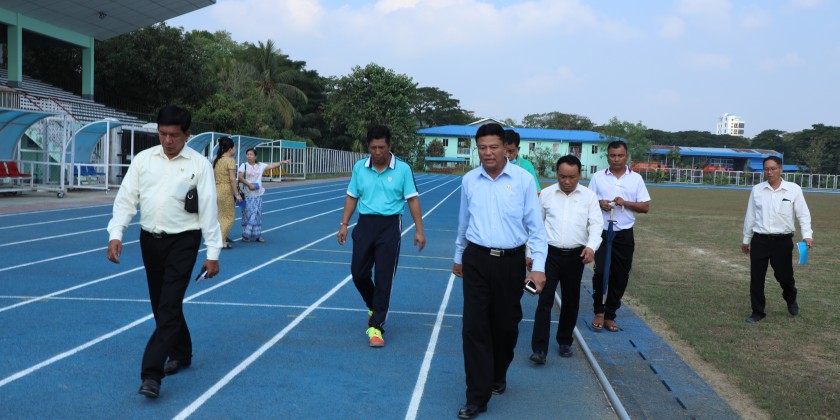 On arrival at Padetha Sports Ground in South Okkapala Township, the Union Minister instructed for systematic maintenance of the Synthetic Runway. He also inspected the construction of 4-storey hostel being constructed by spending over 1.36 billion kyats allotted by Yangon Region Government.