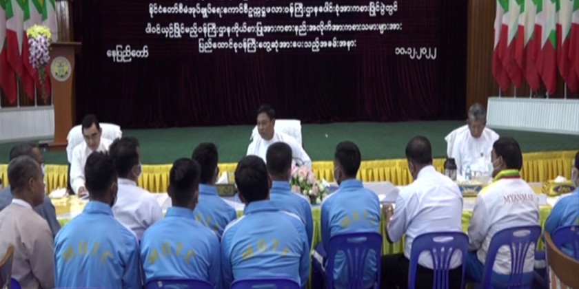 On Saturday, member of the State Administration Council Union Minister Admiral Tin Aung San met with the athletes who will represent the ministry in the competition.