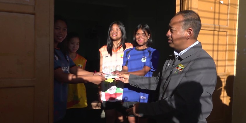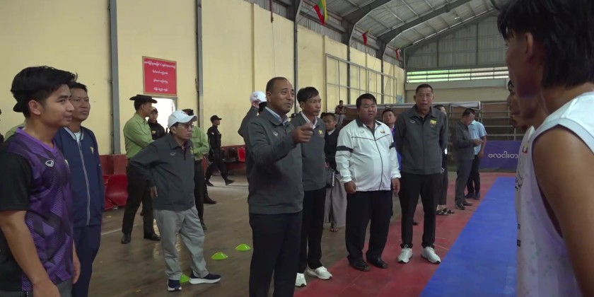 Then, the Chief Minister and party observed the practicing of Fusal who will be participate in State and Region Fusal Competition (Men) 2025 and provided cash assistance. They also inspected the accommodations arrangement for athletes who will compete in the competition hosted by Shan State. Later, they met with track and fields athletes and provided cash assistance.