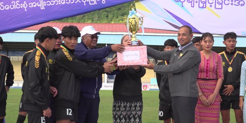 Chief Minister U Aung Aung, State ministers, officials and enthusiast enjoyed the final match where Taunggyi University team beat Technological University with 3-0. At the awarding ceremony, prizes including best player and goal keeper were presented by officials while the Chief Minister presented individual medals, cash award and trophy to the winning team, Taunggyi University.