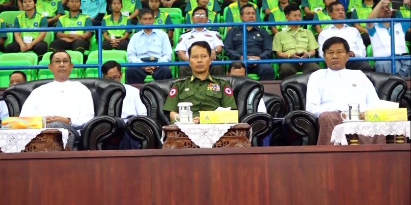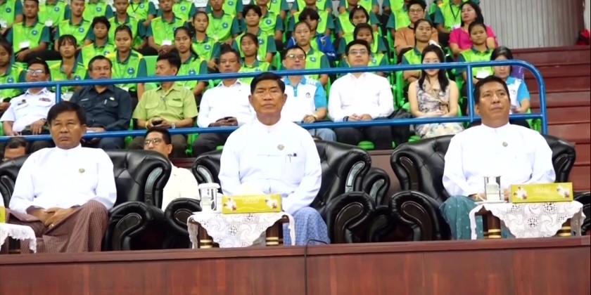 After the oath-taking ceremony by the athletes, the Union Minister and Yangon Region Chief Minister U Soe Thein greeted participants and presented a cash award to the performing teams. They also enjoyed the first match of the men’s Vandoe (short stick fighting) competition.