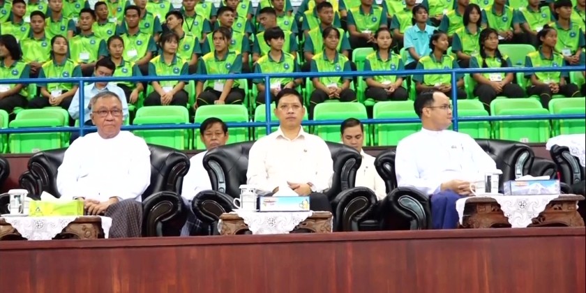 In the evening, the Union Minister visited training venues of national teams preparing for the 33rd SEA Games, including the Myanmar Cricket Federation, Sepak Takraw training center, Wushu training hall, and archery grounds in Tamwe Township. He encouraged athletes to train systematically, follow international standards, maintain discipline, and strive to win medals and raise Myanmar's flag on the international stage. Cash assistance were also provided to athletes during the visit.