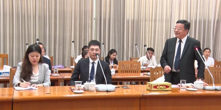 This meeting at the Ministry in Nay Pyi Taw discussed operations of the visiting engineering teams from China for the reconstruction of Aung San Stadium. The meeting was also attended by Deputy Minister U Myo Hlaing and many other officials.