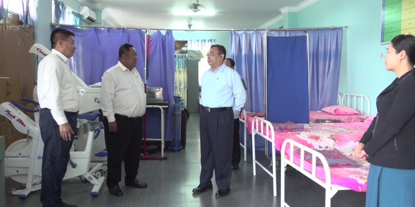 Deputy Minister for Sports and Youth Affairs U Htein Lin, together with officials, made an inspection tour in Taunggyi on Sunday. At the Institute of Sports and Physical Education (Taunggyi), the Deputy Minister and party inspected the office and clinic where he instructed the Principal and officials to conduct office work systematically and to be a good clinic, providing effective health care services for the students.