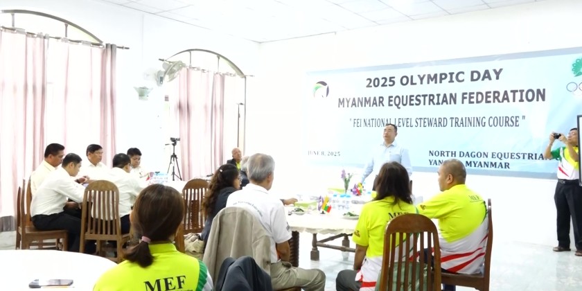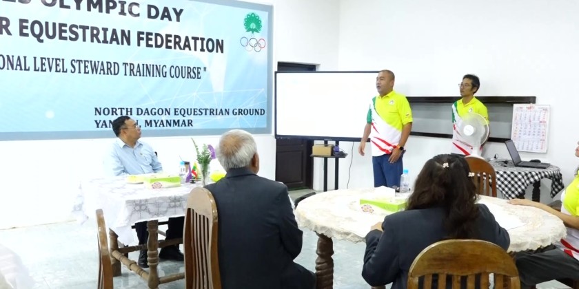 The Deputy Minister and party later proceeded to Myanmar Equestrian Federation in Dagon Myothit (North) Township and urged all to strive for winning medals in the upcoming 33rd SEA Games. They then visited the National Indoor Stadium (1), Thuwunna and met with the Chairman and officials from the Myanmar Penkat Silat Federation to discuss the training process and selecting athletes for the upcoming SEA Games.