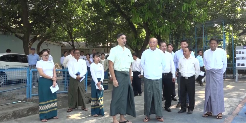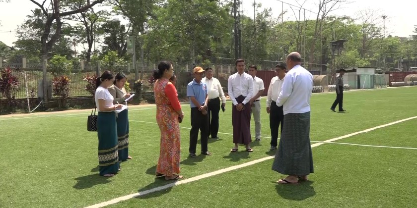 Afterwards, the Union Minister visited the synthetic grass football field in Bahan Township and the Salin football ground in Kyimyindaing Township, where he assessed the maintenance measures of the stadiums and preparation for renovation of bleachers.