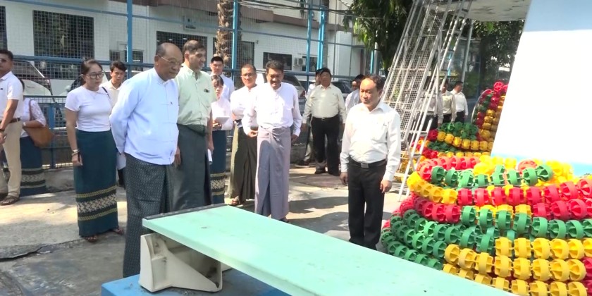 During the visit, the Union Minister observed the repair works of the water filtration plant with a budget of 241 million Kyats, in the 2024-2025 fiscal year. He also observed the preparations for conducting summer swimming courses and provided the necessary instructions. He later inspected the preparation measure for opening of the Gym Hall of Myanmar Woman Sports Federation.