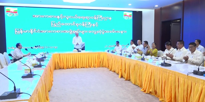 At the National Sport Stadium (1) in Thuwanna, the Union Minister met with the Chairmen, Vice-Chairmen and secretaries of the Cycling, E-Sports and Traditional Sports Federations. During the meeting, the Union Minister called for collaboration among the sports federations in raising the standard of Myanmar's sports.