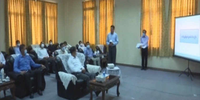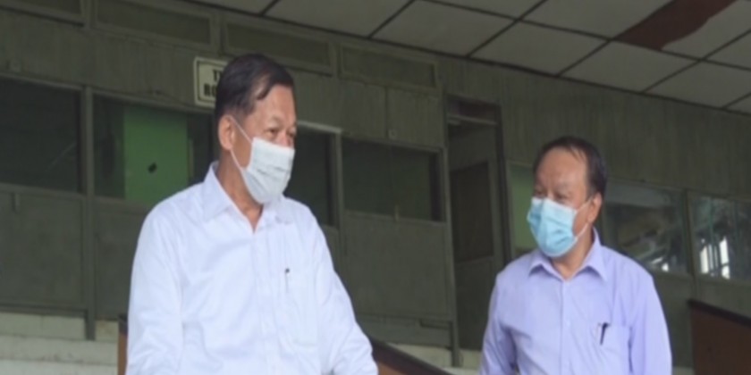 First, at the Aung San Stadium, the Senior General inspected reconstruction of the Stadium, and the Union Minister for Sport and Youth Affairs and officials reported on the condition. At the meeting hall of the Stadium, Union Minister U Min Thein Zan explained the facts about the stadium, its brief history and the damage situation of the buildings.