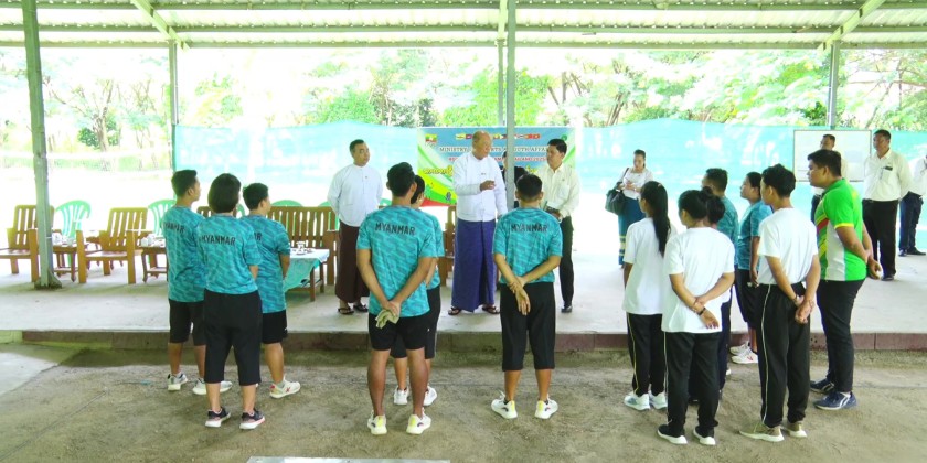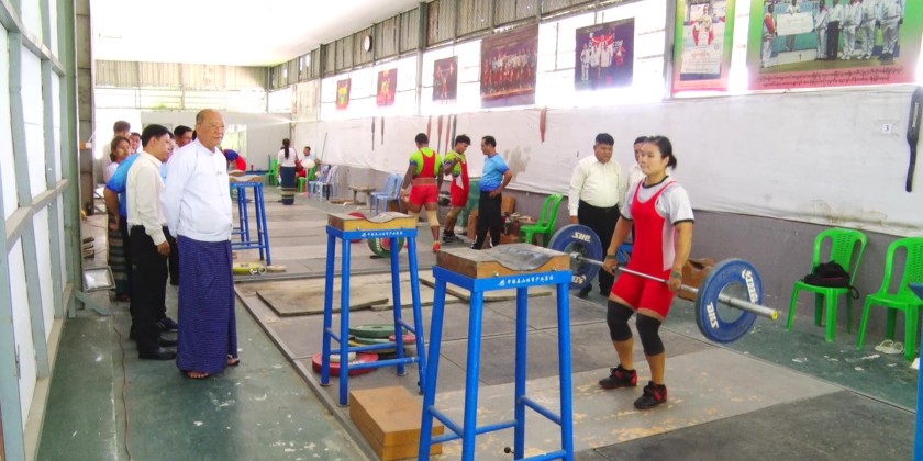 Chairman of Myanmar Olympic Committee Union Minister for Sports and Youth Affairs and Hotels and Tourism Jeng Phang Naw Taung visited the Gold Camp in Nay Pyi Taw on Thursday, to view the training process of athletes for Petanque and weightlifting.