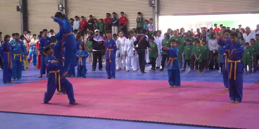 Shan State Chief Minister U Aung Aung, accompanied by State Ministers and officials, attended the training completion ceremony for the Summer Basic Sports Course at the State Training Indoor Stadium in Taunggyi on March 16th.