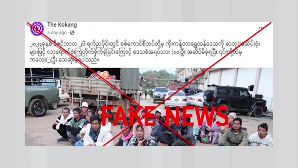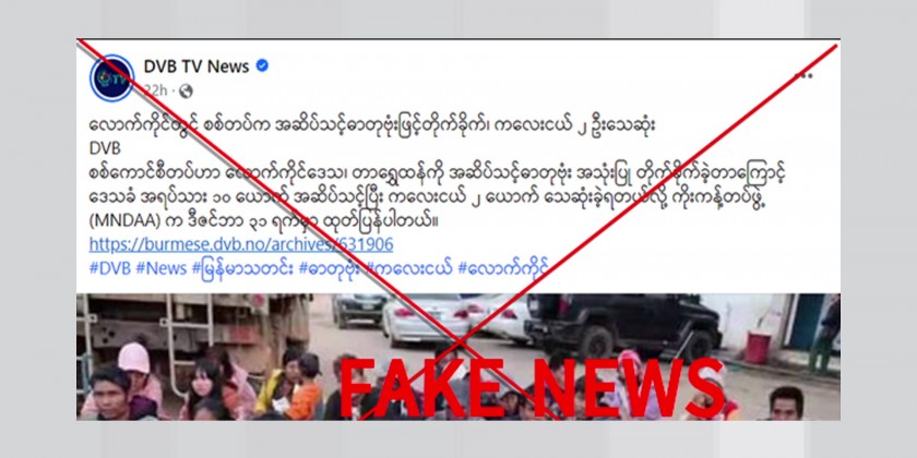 It is found out that the fake news and rumors are being disseminated on social media platforms by the subversive media outlets “DVB” and “The Kokand Facebook” claiming that ten local civilians poisoned and two children killed due to the Tatmadaw’s attack with poisonous chemical bomb to Ta Shwe Htan area in Laukkai Township.