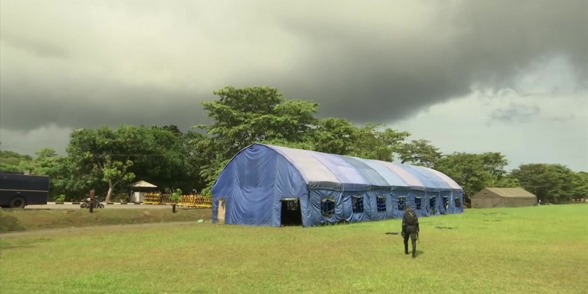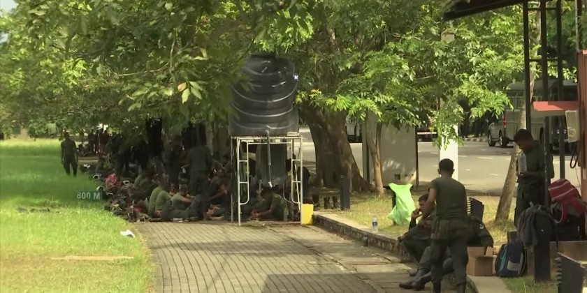 In Sri Lanka's capital, Colombo, security around the Parliament building was heightened on Saturday with armed masked soldiers and roads near the building closed to the public.