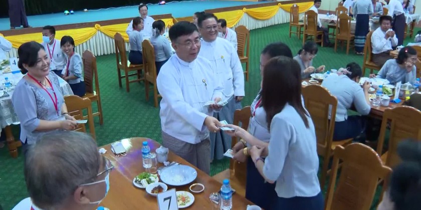 The Union Minister for Education Dr. Nyut Pe hosted a staff gathering luncheon for the officers, staffs and families who are serving the assigned duty in the education sector to have good operation of the state mechanism at the office of ministry, Nay Pyi Taw on November 29.
