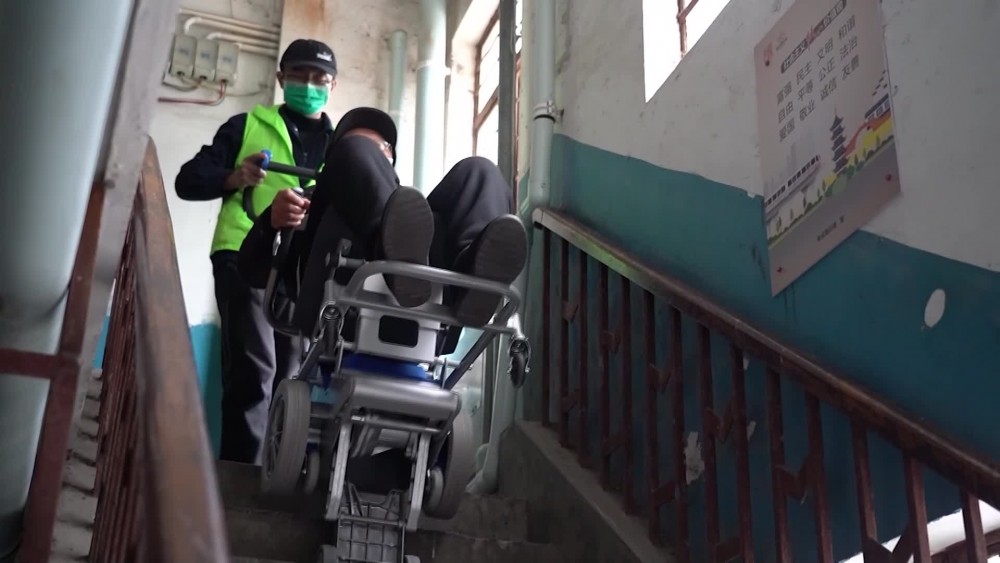 Five minutes later, he reached the ground floor safely. Such an electric stair climbing wheelchair can climb about 400 steps on a full charge. At present, there are more than 10 service personnel in Jiading District of Shanghai, providing door-to-door services for the elderly.