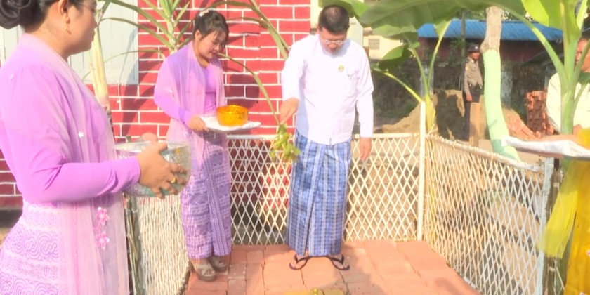 The Stake Driving ceremony for the Billiards and Snooker Hall located within the Koe Thayin Sports Ground in Pathein, Ayeyarwady Region, was held on March 8th at the site where the sports hall will be constructed. The Ayeyarwady Region Chief Minister U Tin Maung Win, together with regional government ministers, attended the ceremony and drove the stakes.