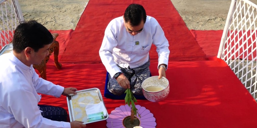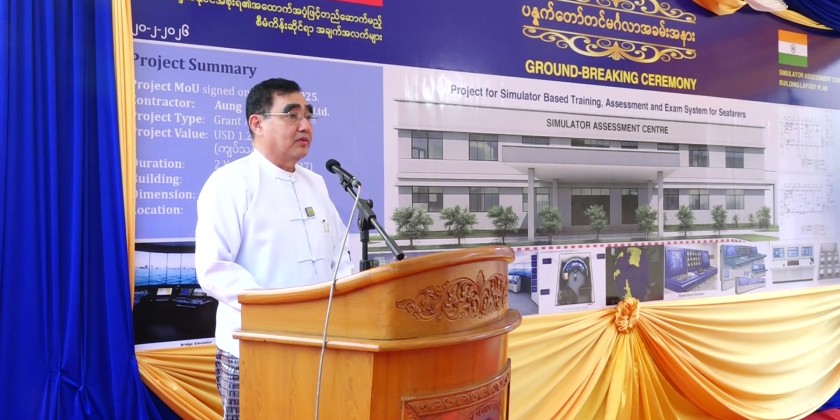 A stake-driving ceremony for a two-storey reinforced concrete (RC) Simulator Assessment Centre was held at DawPon Shipyard in Yangon on Friday. Yangon Region Chief Minister U Soe Thein, Deputy Minister for Transport and Communications U Aung Kyaw Tun, Indian Ambassador to Myanmar Mr. Abhay Thakur, senior officials and departmental representatives attended the event.