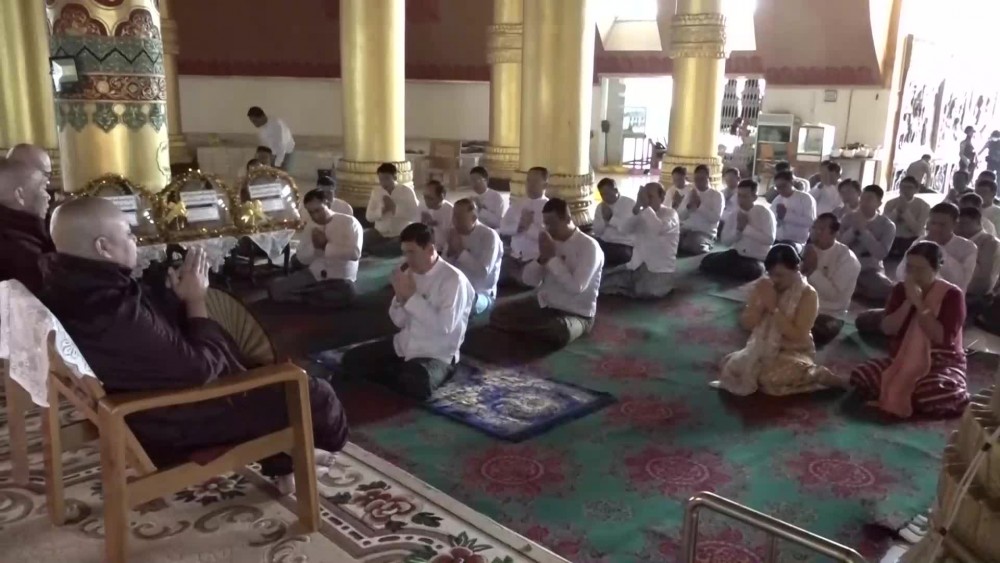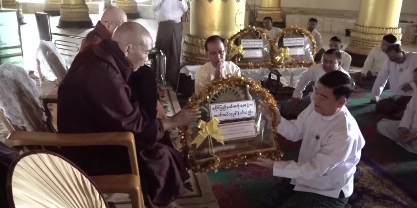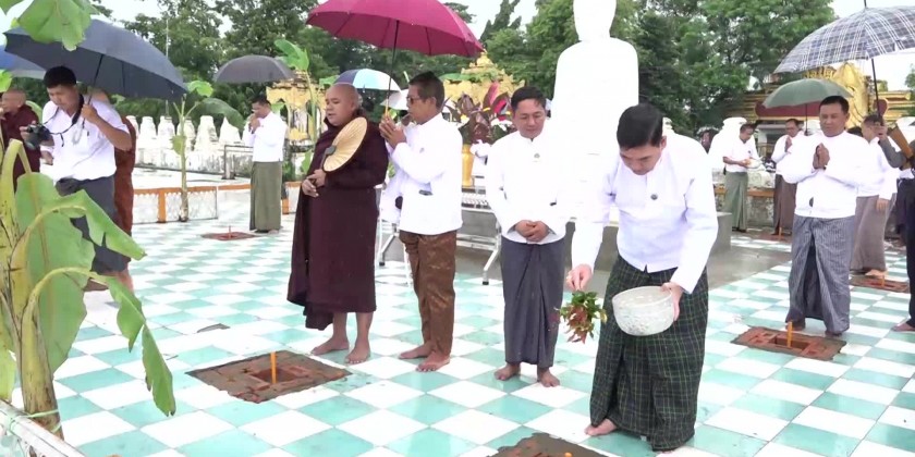Then, as the first part of ceremony, the congregation led by the state Chief minister observed five precepts administered by the presiding Sayadaw of Pannalankara monastery and offered the offertories to the members of Sangha.