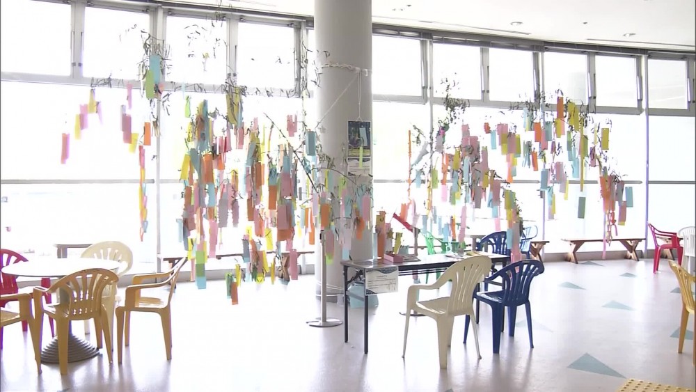 The pair is only allowed to meet once a year on 7th July.People in Japan observe the day by writing their wishes on strips of paper and then hanging them on bamboo branches.Bamboo collected in the park was placed at nine locations.Many young visitors wrote their wishes on paper strips and tied them with string to the branches.