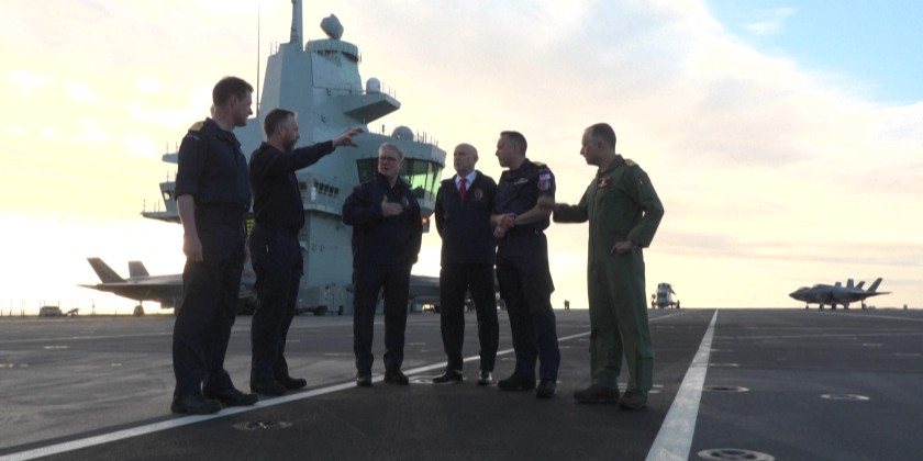 UK Prime Minister Keir Starmer and Defence Minister John Healey visited the aircraft carrier HMS Prince of Wales, as it heads off to lead the international Carrier Strike Group to the Indo-Pacific. Starmer met the soldiers on board the ship ahead of an eight-month deployment to the Indo-Pacific region and said that the deployment was a show of ‘global leadership on defence and security’.