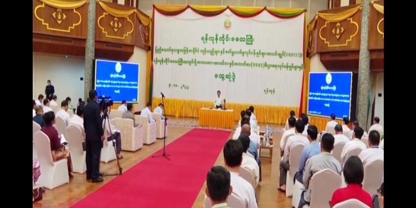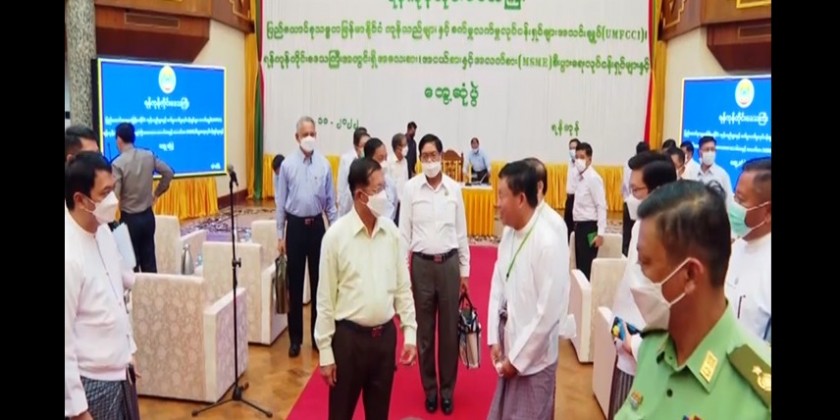 Chairman of the State Administration Council Prime Minister Senior General Min Aung Hlaing met the Union of Myanmar Federation of Chambers of Commerce and Industry and the micro, small and medium enterprise (MSME) entrepreneurs in Yangon Region at the Zeyathiri Beikman in Yangon on Monday to discuss economic development.