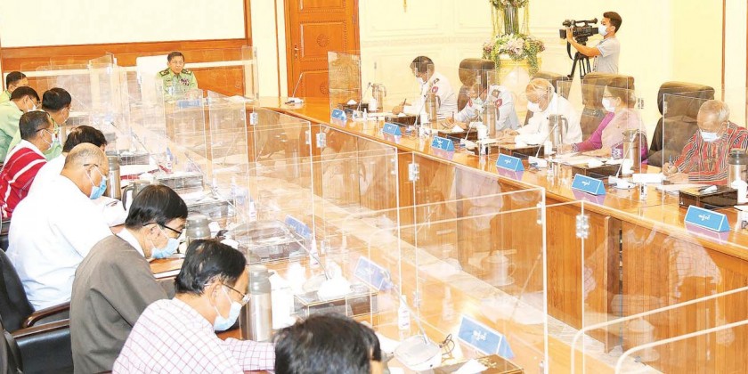 Chairman of the State Administration Council Commander-in-Chief of Defence Services Senior General Min Aung Hlaing addressed the Council’s meeting (10/2021) on Monday in Nay Pyi Taw. The meeting at the meeting hall of the State Administration Council was also attended by Vice-Chairman of the Council Deputy Commander-in-Chief of Defence Services Commander-in-Chief (Army) Vice-Senior General Soe Win and many other high ranking officials.
