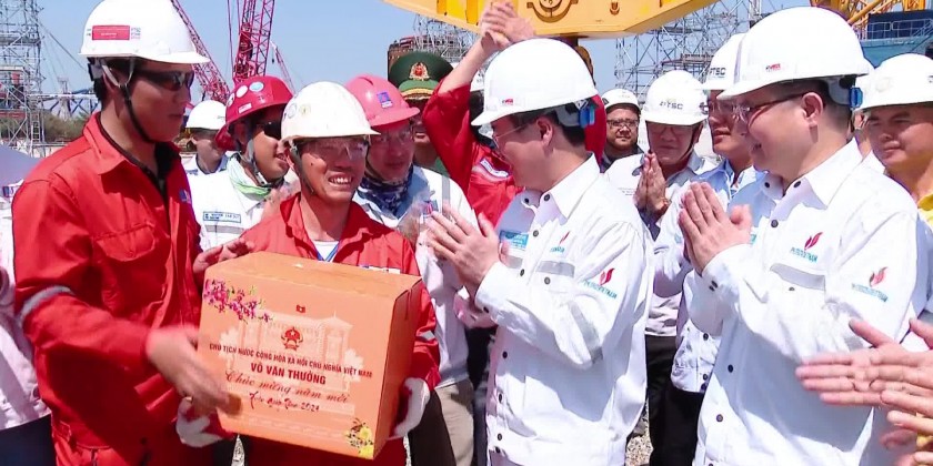 Viet Namese President Vo Van Thuong on Friday visited Cuu Long Joint Operating Company's central drilling rig, offering New Year wishes to its officials and engineers and the 60,000-strong staff in the oil and gas industry, in the southern province.