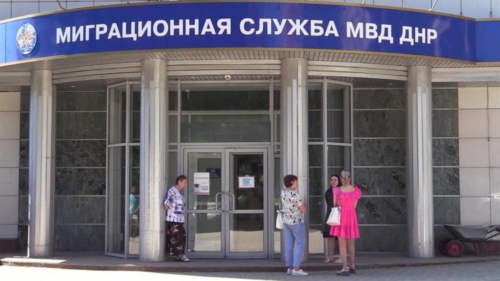 Russian state TV released footage Saturday of an office issuing Russian passports. The building is situated in the Donetsk region of Ukraine.