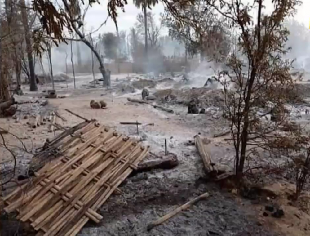 Two women, 83-year-old Daw Khin Su and 81-year-old Daw Htwar Sein were rescued from the burning houses by the security forces and taken to a village monastery that was safe from the fire, and the security forces left the village at 6:30 pm.