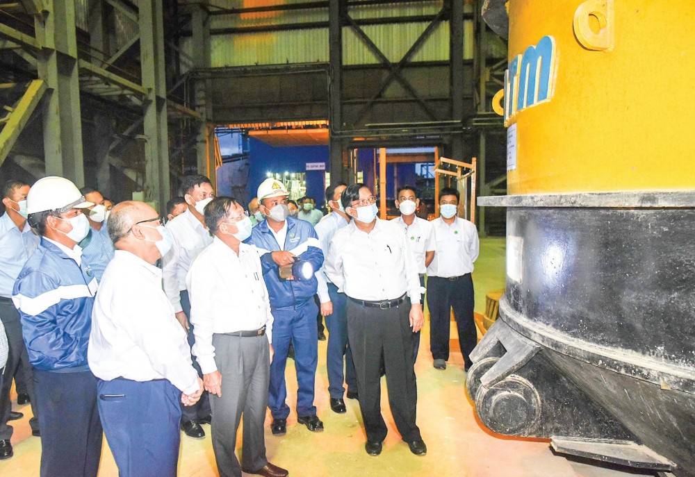 Chairman of the State Administration Council Prime Minister Senior General Min Aung Hlaing, accompanied by the SAC members, Union Ministers, the Shan State Chief Minister, senior military officers, the Commander of Eastern Command and other officials inspected the No (2) Steel Factory (Pinpet) operated by No (1) Heavy Industrial Enterprise under the Ministry of Industry near Pin Ngo Village of Pinpet region of Taunggyi Township on Friday evening.